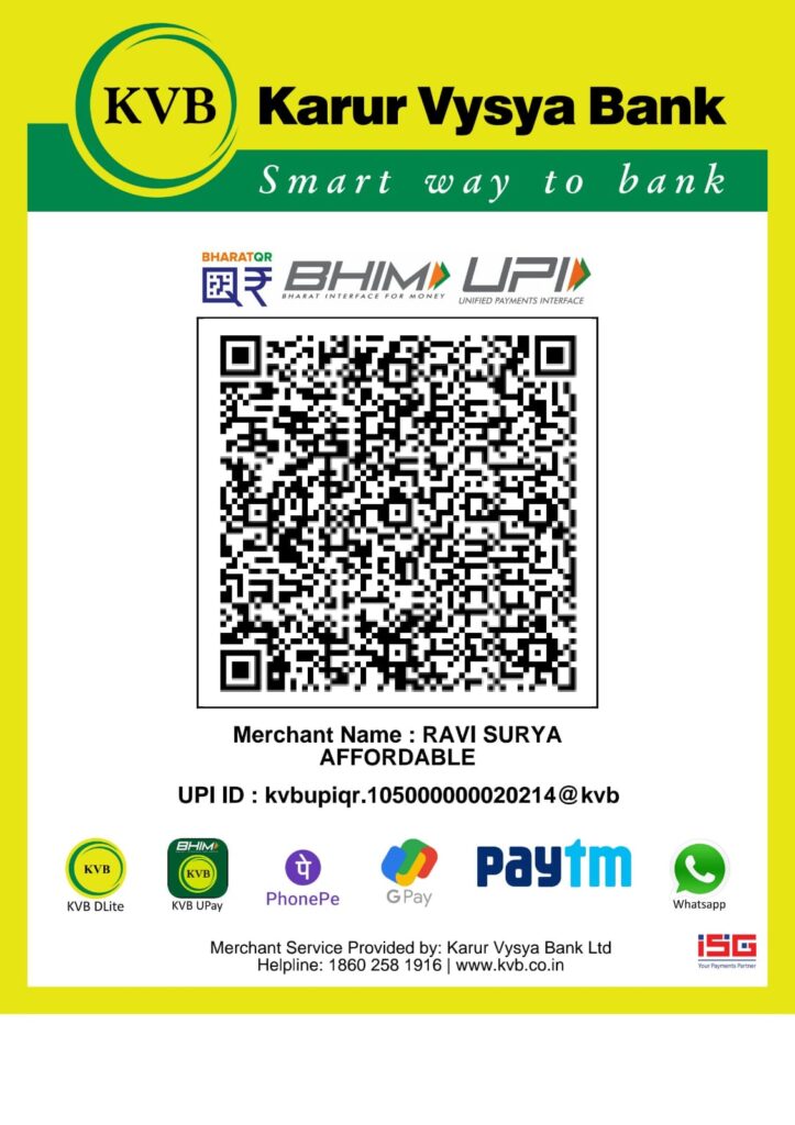 RAVI SURYA AFFORDABLE HOMES PVT LTDAccount No. 4501135000007470IFS Code :- KVBL0004501Bank :- KARUR VYSYA BANK LTD. Branch Address: MI ROAD JAIPUR